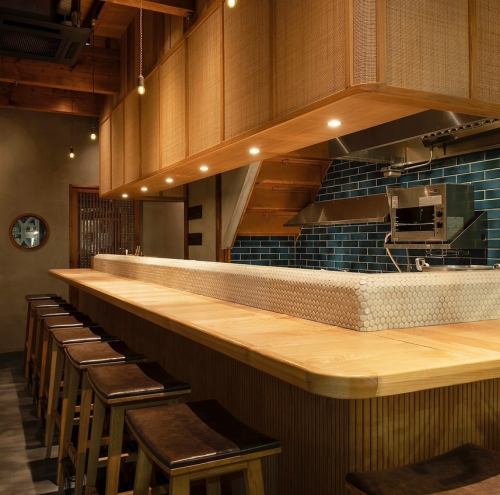 1階にはカウンター席が御座います。スタッフとの会話も楽しめる空間がカウンター◎少人数でしっぽりとお愉しみ頂けます。もちろんお1人様も大歓迎ですので、お仕事帰りに1杯でも、お気軽にお待ちしております。